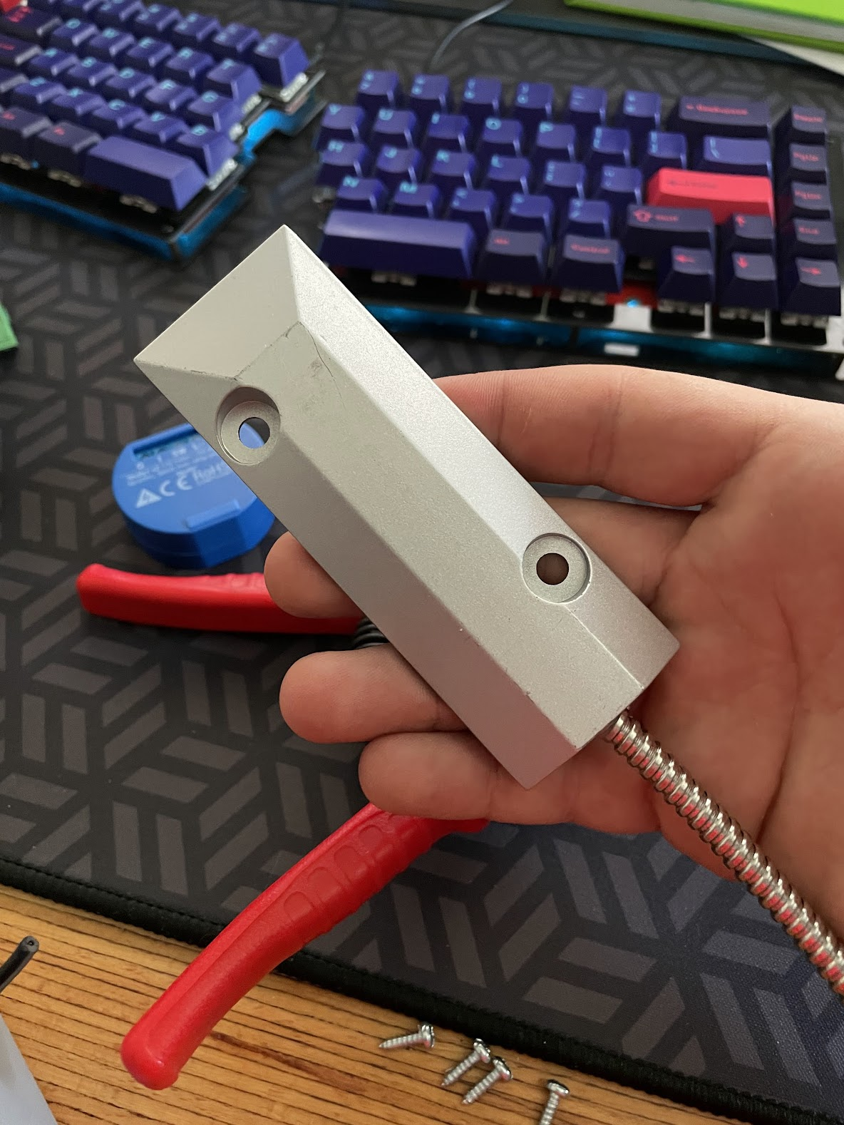 It only came with the shortest of pigtails so in a zeal of professionalism I added this cute little junction box to extend it to the gate motor. The sensor and acompanying maget were mounted to the wall and garage respectively. Exact positioning of the sensor and magnet was a bit of trial and error with a multimeter to have it trigger only when the garage is fully closed. From a security standpoint this is the most important signal, either my garage is fully closed, or it isn’t.