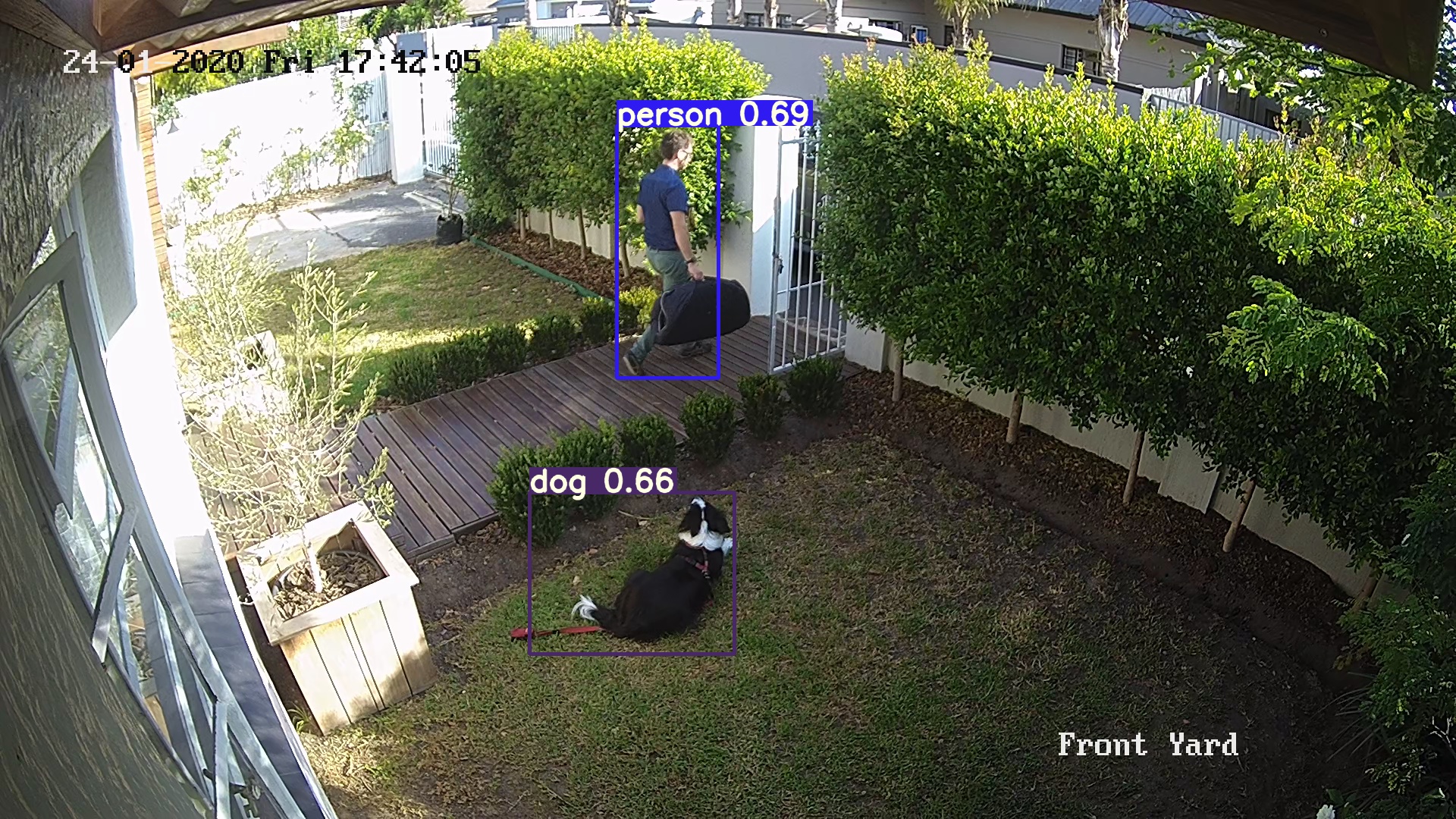 A few weeks ago I was ruminating about the poor state of motion detection in home security cameras with colleagues (notwithstanding the numerous selling my privacy to the highest bidder functional cloud solutions). Someone mentioned they want to setup a person detector on one of their cameras and have it notify them when a person is found. I was interested, but dismissed it as probably being a bit too difficult to implement over a weekend, I’m not quite up to the latest hip and happening things in machine learning.