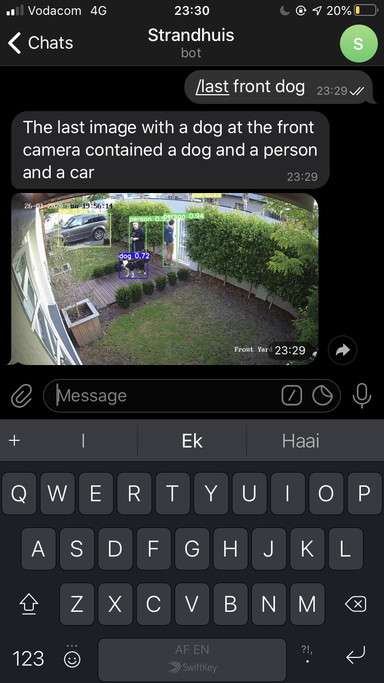 Suddenly we are thrust from the murky realm of maybe into the sleep depriving reality of “I can do this before the end of the weekend”, and the result is the mishmash you can find in this GitHub repo: https://github.com/H-SG/ipcam-yolo-telegram
